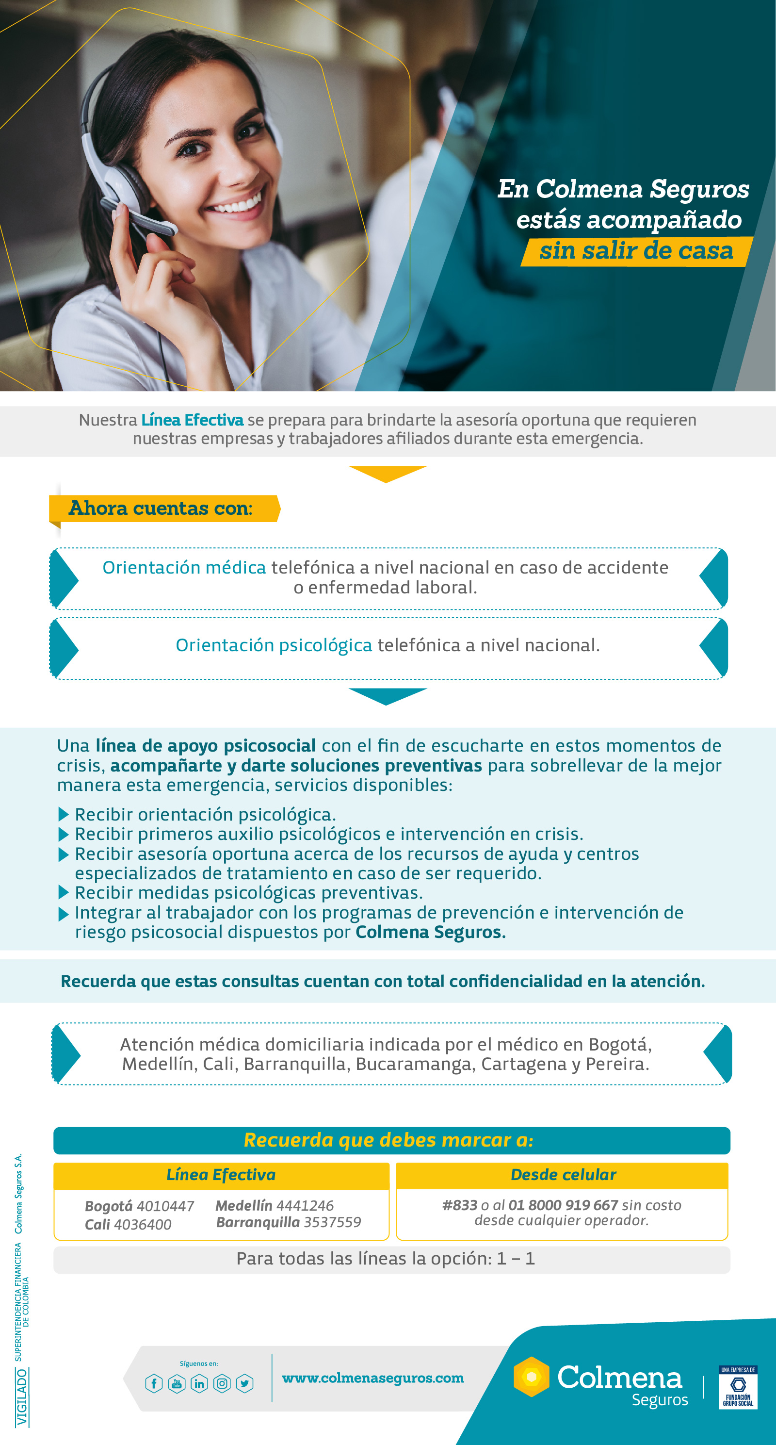 En Colmena Seguros estamos listos para darte toda la asesoría e información que necesitas para prevenir, mitigar o minimizar los factores de riesgo generados por COVID-19 en tu empresa, así contribuimos a sostenibilidad y continuidad de nuestro país. Encuentra aquí las cartillas, infografías y todo el material que hemos desarrollado por COVID-19.