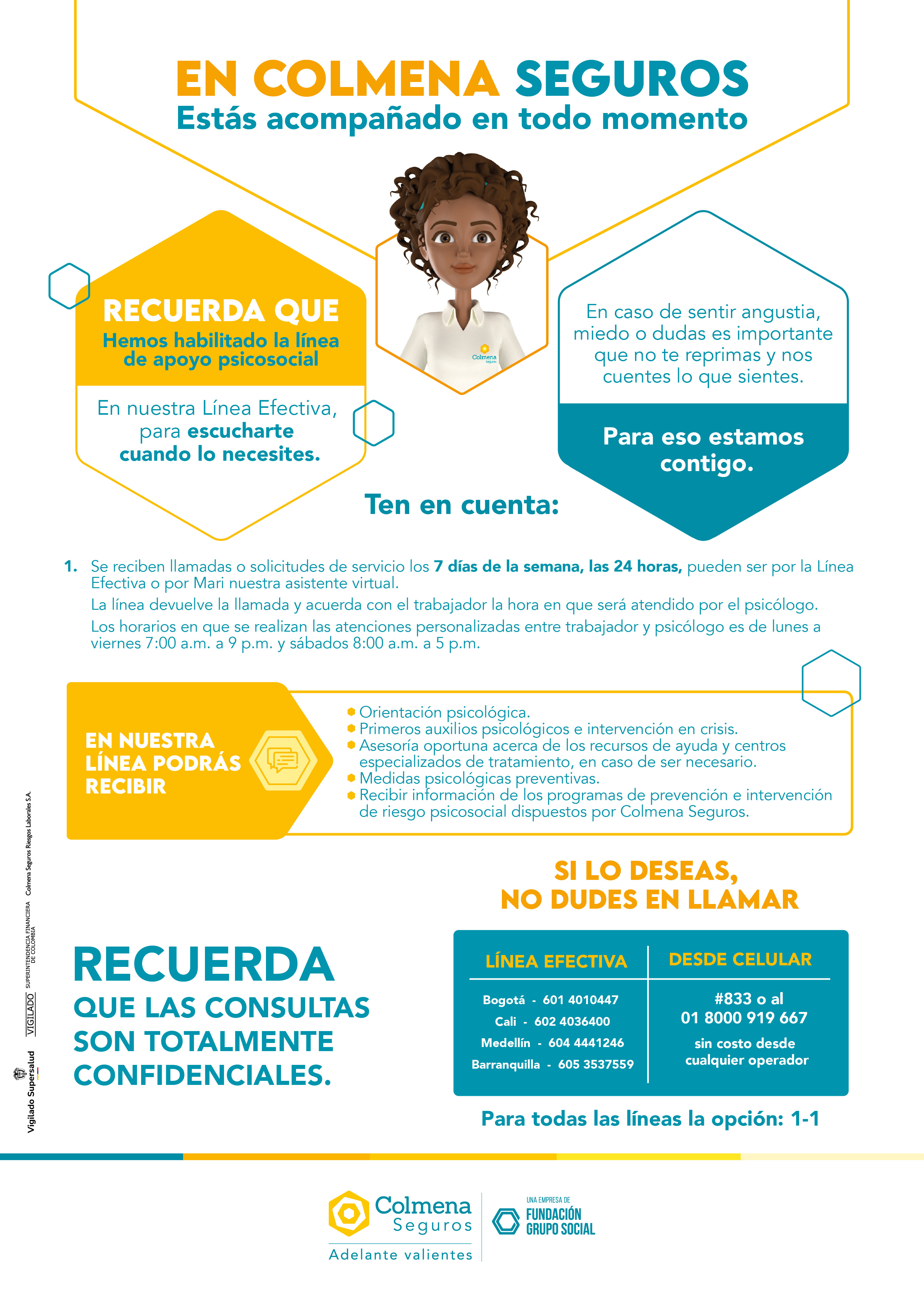 En Colmena Seguros estamos listos para darte toda la asesoría e información que necesitas para prevenir, mitigar o minimizar los factores de riesgo generados por COVID-19 en tu empresa, así contribuimos a sostenibilidad y continuidad de nuestro país. Encuentra aquí las cartillas, infografías y todo el material que hemos desarrollado por COVID-19.