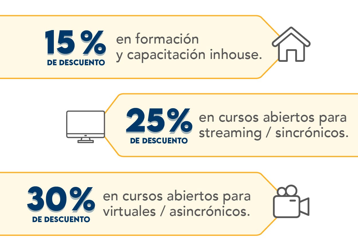 • El descuento no aplica para cursos comprados directamente en la página web, sino a los adquiridos directamente por el área comercial de BUREAU VERITAS