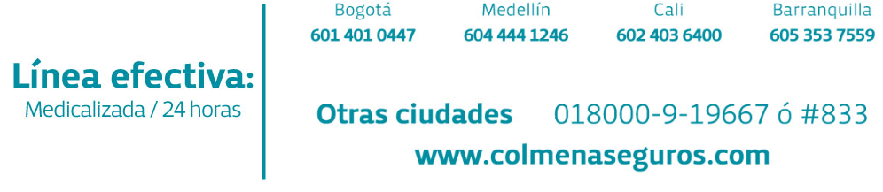Envía la información al buzón de correo: servicioalcliente@colmenaseguros.com